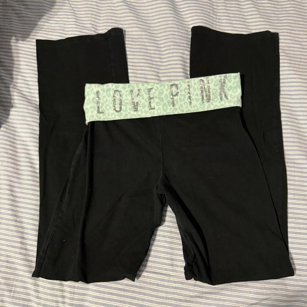 Y2K PINK Victoria's Secret Foldable Waist Flare Yoga Pants Black Size M - $125 - From Jak