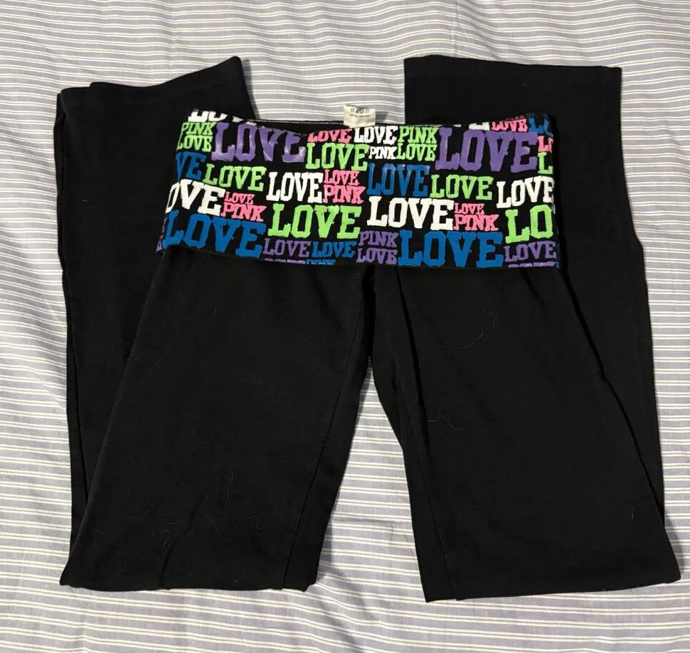 Y2K PINK Victoria's Secret Foldable Waist Flare Yoga Pants Black - $125 - From Jak