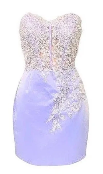 Channel your inner fairy prom queen in this lilac shimmering satin bustier dress with mesh overly pa... Show more