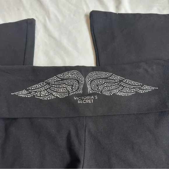 Y2K Victoria's Secret Bling foldover Waist Flare Yoga Pants Black Size L - $125 New With Tags - From Jak