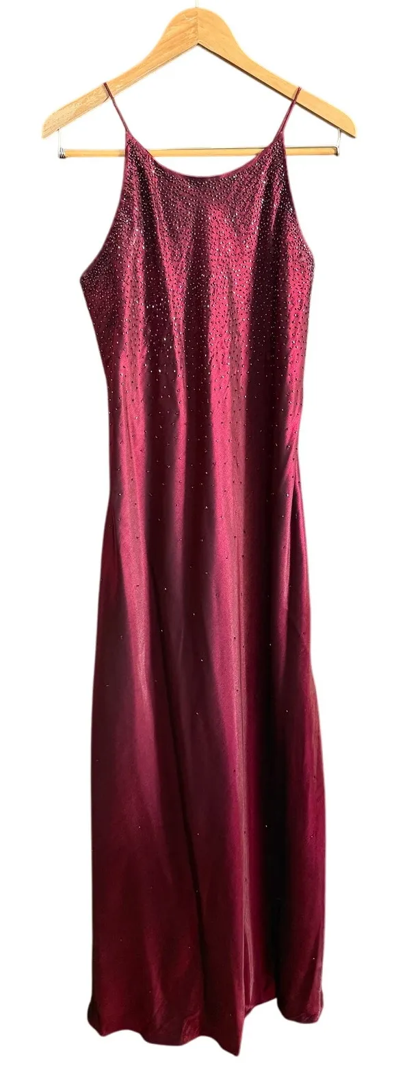 90s Vintage ASPEED Burgundy High Neck Beaded Gown Prom Dress Vintage from the 90s Burgundy with a pearlescent sheen Beading on front - Denser toward neck and scatters down the dress High Neck Spaghetti Straps Bias Cut Fit and Flare fit Excellent vintage condition - no flaws Women's Size XL 90s Prom Dress, Homecoming, Hoco, Halter dress, Maroon Dress