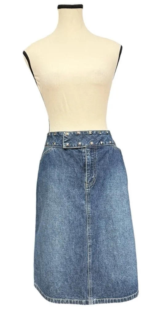 Classic denim skirt with a modern twist by Anchor Blue. This mid-length skirt features edgy silver s... Show more