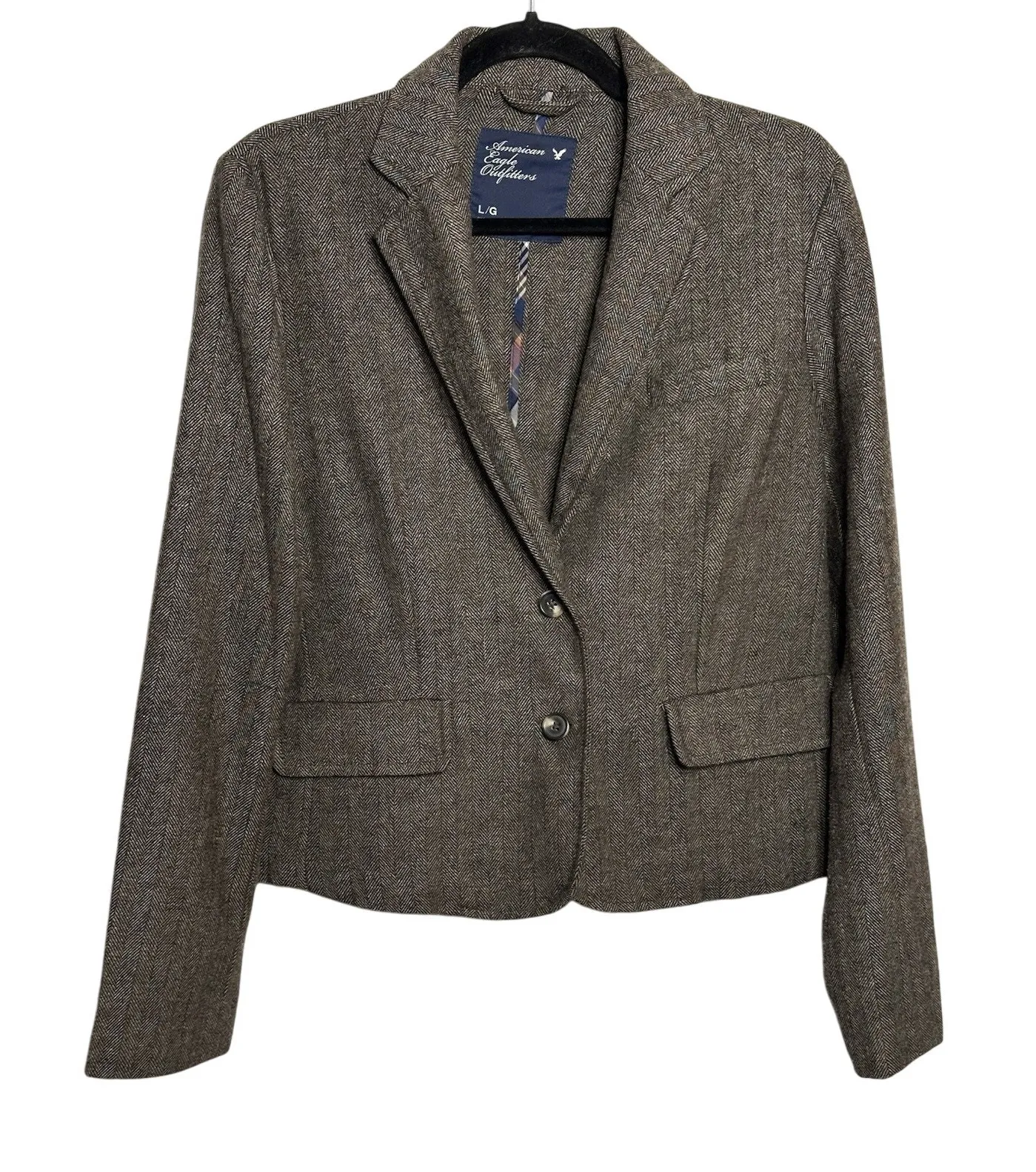 This Y2K American Eagle Wool Blazer in brown herringbone is a stylish and classic addition to any wa... Show more