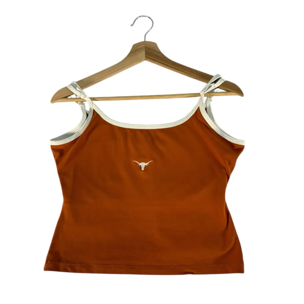 World Class Sportswear burnt orange longhorn cropped tank top with white contrast trim and embroider... Show more