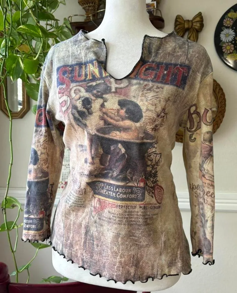 Y2K YUKIKO Sunlight Top M Artsy Rhinestones Western Vintage Ad Print USA made Size M - $21 - From Kelly