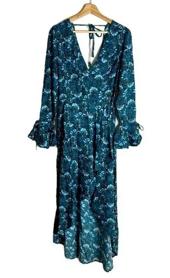 Band of the Free JEWEL TEAL FLORAL WRAP MAXI DRESS size medium whimsical - $65 New With Tags - From Amber