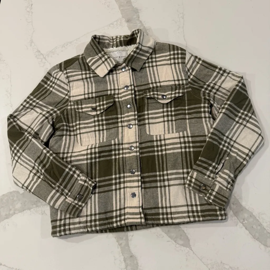 Lucky Brand Plaid Sherpa Flannel Shirt Jacket Women’s Size Small Sage Green - Snap Button In good c... Show more