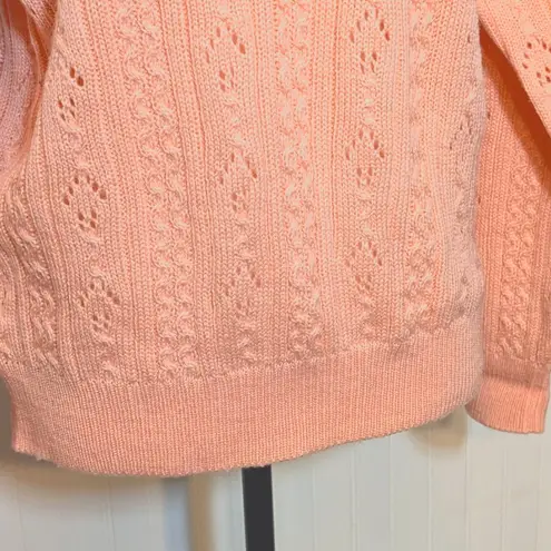 Vintage Pink Cable Knit Mock Neck Sweater 80s Oversized Northern Isles Size L Beautiful vintage sweater in a soft peachy pink shade. Features a cozy mock neck, classic cable + eyelet knit pattern, and ribbed cuffs/hem. Made from 100% acrylic, giving it that perfect vintage feel. Can be worn true to size or styled oversized for a chic retro look. Size: Large Material: 100% Acrylic Made in Taiwan Condition: Excellent, no flaws noted vintage knit sweater, peachy pink sweater, cable knit pullover, 80s retro sweater, mock neck sweater, oversized cottagecore knit, preppy retro knitwear, cozy vintage sweater (model photos are for fit and style inspiration. all other photos are of the actual sweater you will be receiving)