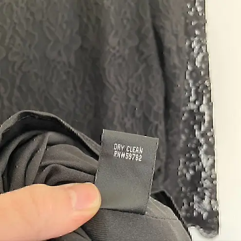 - Adrianna Papell Boutique - size 4 - solid black lace square neck front / v v-neck back 3/4 length... Show more