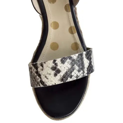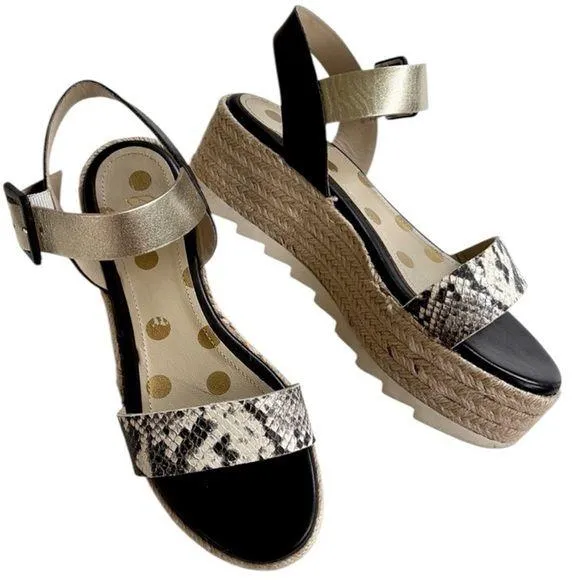 Excellent pre-loved condition; Black, gold, and snakeskin embossed leather uppers; adjustable buckle; 2" platform; small mark as shown; Boden size 37 which is equivalent to a size 6; smoke free home.