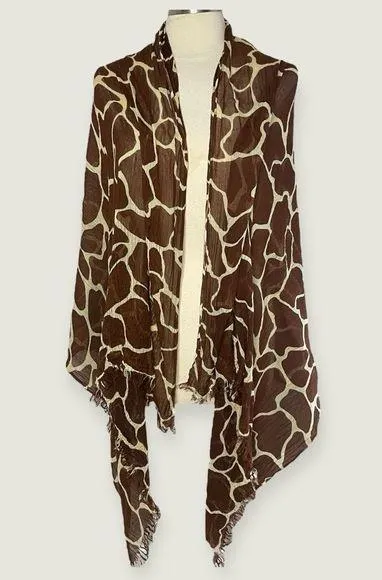 BROWN ANIMAL PRINT PASHMINA WRAP 36”W x 69”L Classic animal print pattern in brown and beige. Lightweight, breathable fabric (cotton/viscose). Frayed raw hem. Wide enough to use as a wrap or a scarf. PREOWNED, EXCELLENT CONDITION ALL SALES FINAL. WE SHIP SAME OR NEXT DAY. Ask questions before buying. No refunds or exchanges.