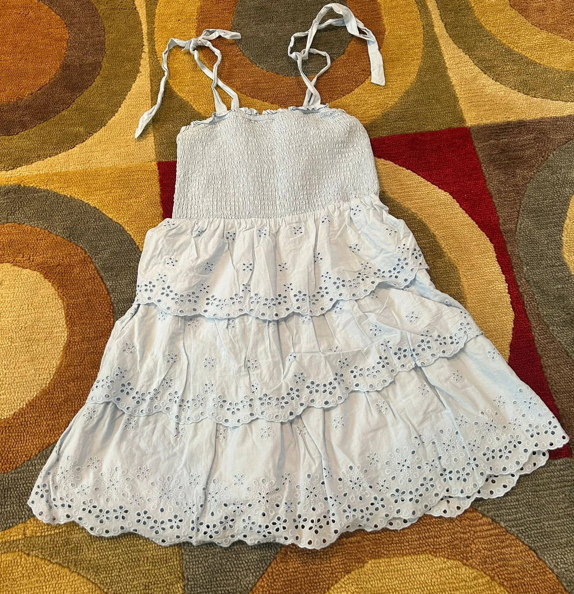 American Eagle Light Blue Eyelet Ruffle Smocked Tie Sleeve Mini Dress Medium Excellent Condition... Show more