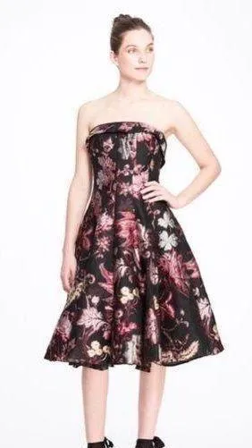 MARCHESA NOTTE Strapless Floral Tea Length Gown Size 8 Color Black New With Tag Magnificent black/mu... Show more