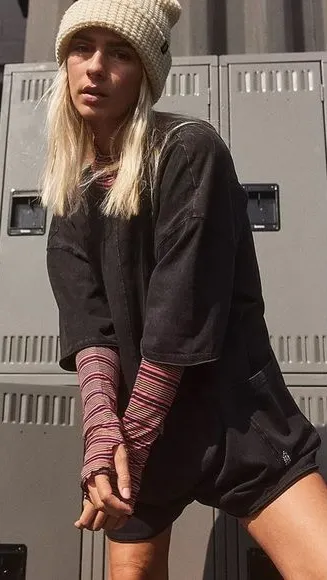 FREE PEOPLE Movement HOT SHOT TEE ROMPER ONESIE NEW without tags! $60 Size: XS X-Small Color: Black/Gray -Mineral wash results in variations in color and provides an intentionally fabulous weathered, acid washed/tie dyed look- see photos and video. -Darker than it appears in the video. -Slouchy, relaxed fit -Shorts -Low ribbed V back and round neck š¤ This can be worn with the V in front or backā¦see photo of gray romperā¦versatile and adorable either way! š¤ -Dropped short sleeves -Raw hems -Oversized patch pockets Bin 15,XS #1 summer spring fall lounging lounge yoga dance running bohemian boho festival beach summer vacation cruise pool cover up athleisure casual layering jumpsuit onesie I have more onesies and many more Free People Movement Good Karma and Happiness Runs items available as well.