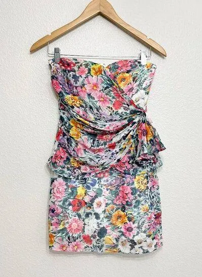 Yumi Kim Katie Strapless Floral Mini Dress Size XS Women's Silk Wrap Pink - $20 - From Fae And