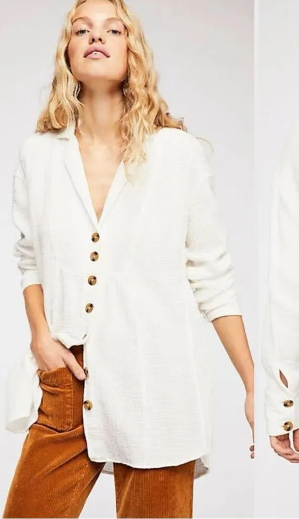 Free People Bohemian All About The Feels Gauze Button Down Shirt in Ivory MSRP $108 Size Large... Show more