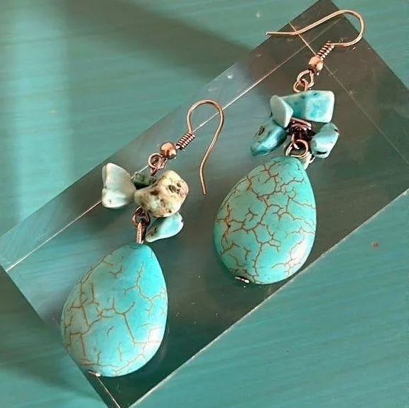 Excellent preloved condition - Southwestern Inspired Chipped Howlite Stone Drop Dangle Earrings Thi... Show more