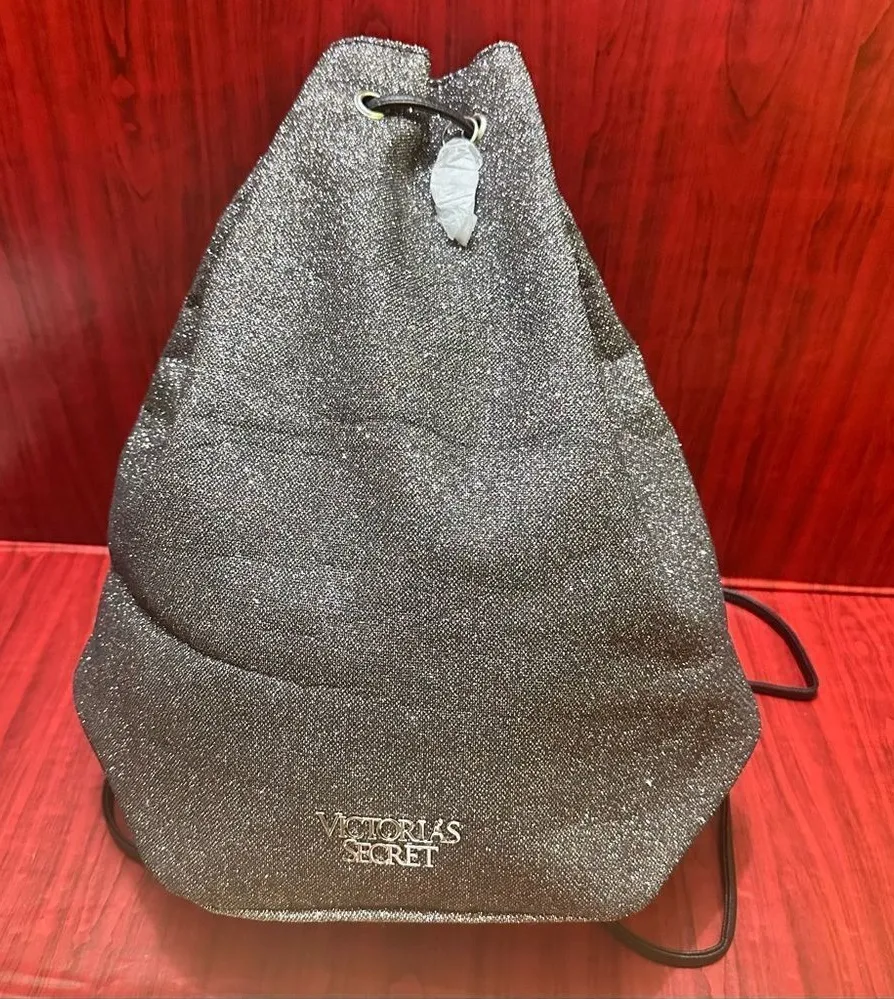 Victorias Secret black backpack sparkle drawstring measuring 16” x 16” x 8” backpack travel or gym n... Show more