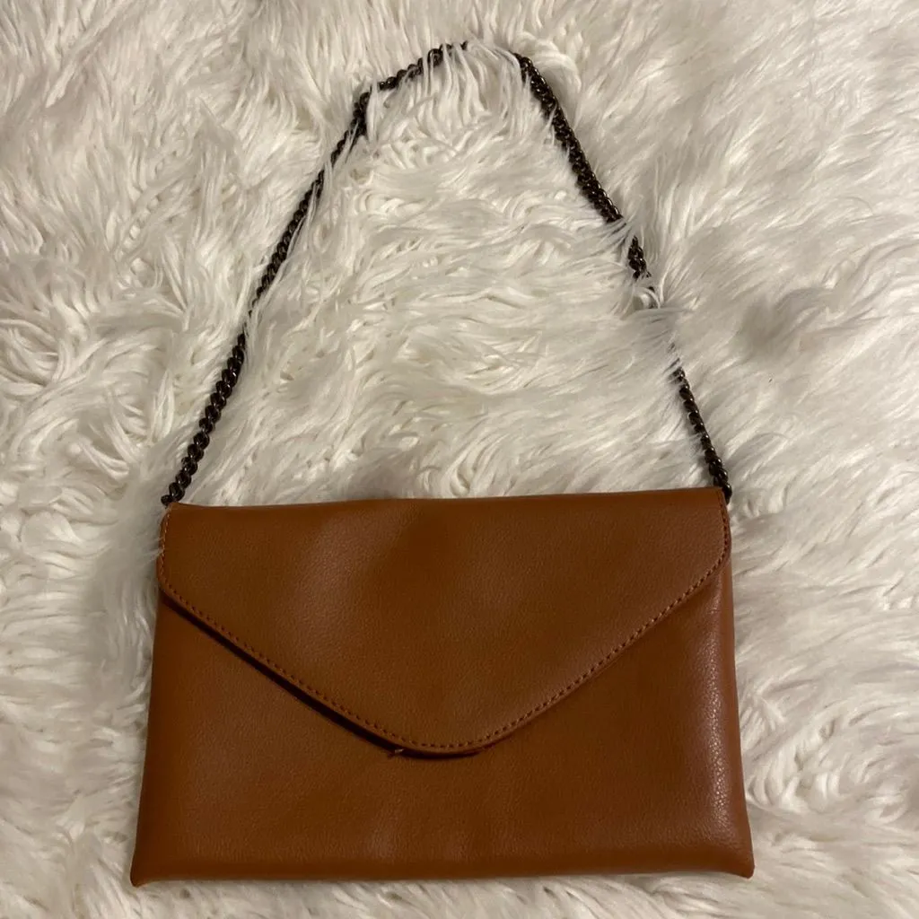 J.Crew 100% Leather Purse /Clutch brow color excellent condition Chain strap, strap can be tucked i... Show more