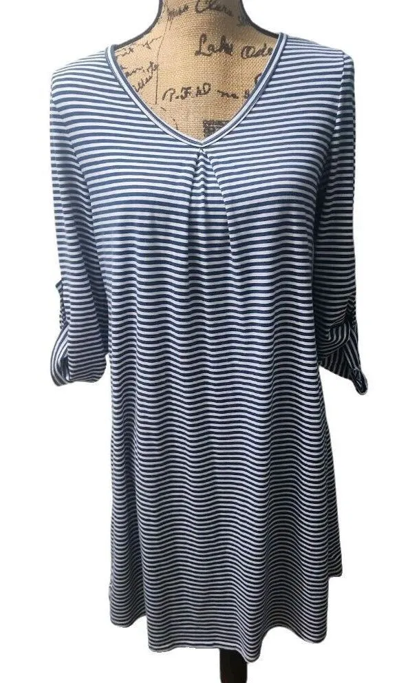 YA Los Angeles Womens Size M Casual Dress Blue White Stripe V Neck measurements 9.5 inches in lengt... Show more