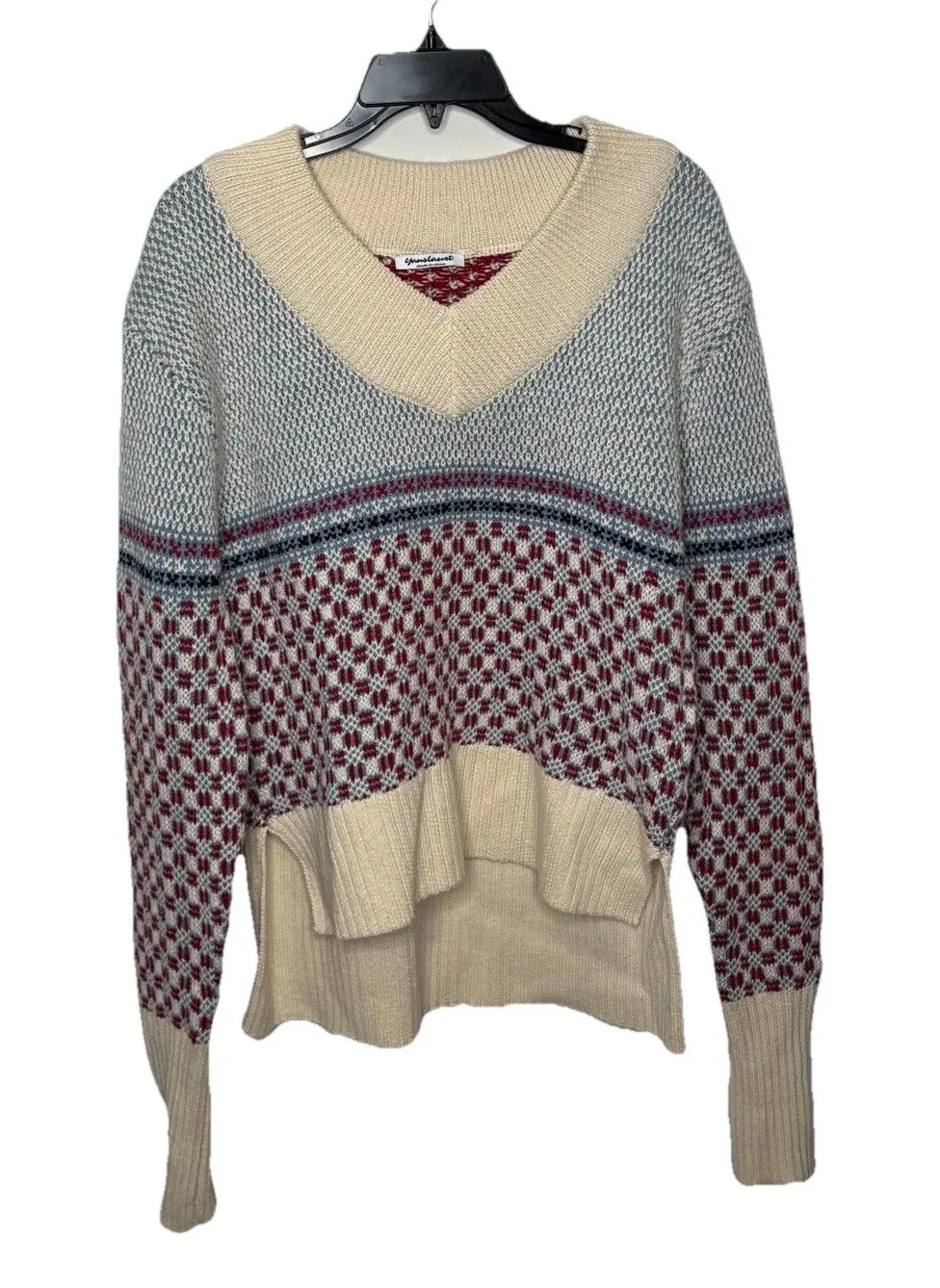 Yans Larat Red Crab Cream Blue V neck High Low Chunky Sweater Size Small Women's. In good conditon.... Show more