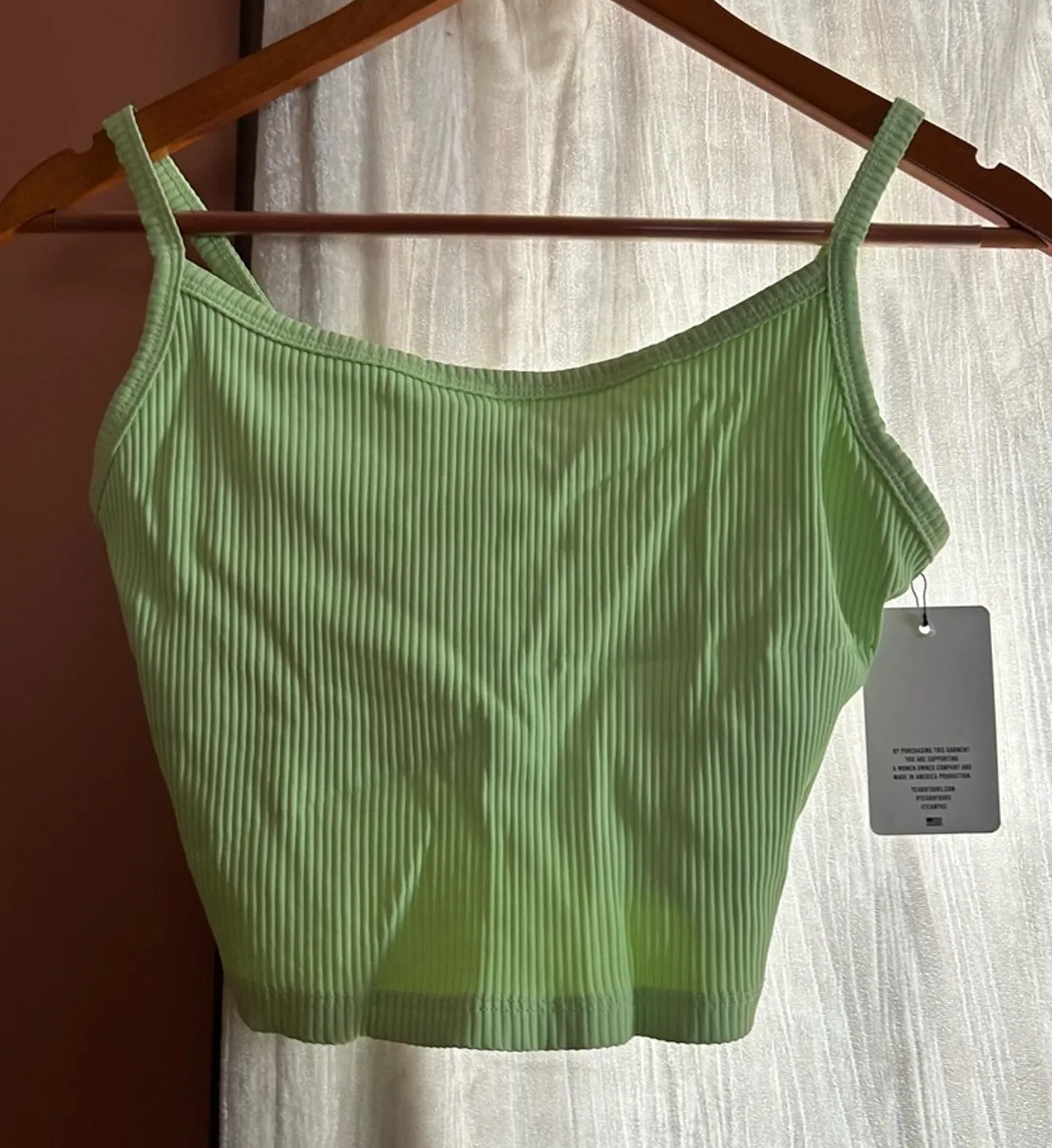 Ribbed Bralette Tank in pistachio by Years of Ours. Cami-cut bralette tank, but with a built-in bra... Show more