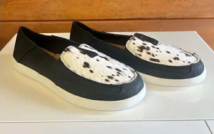 YELLOW BOX WOMEN'S OLEVIA COW PRINT SLIP-ON SHOE - MOC TOE Sz 9.5 NWOT Black - $28 - From Dawn