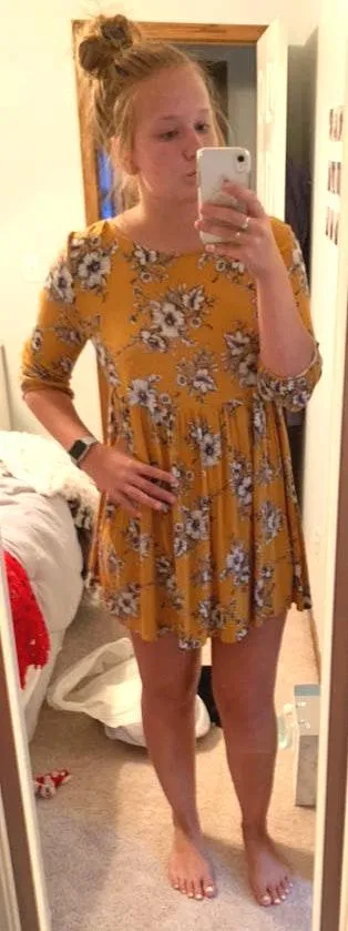 Yellow Floral Dress Gold Size L - $15 (62% Off Retail) - From Claire