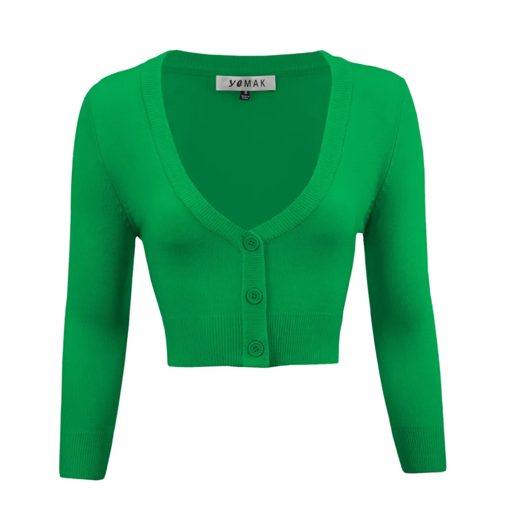 YEMAK Women's Cropped 3/4 Sleeve Cardigan Sweater Bright Green S - $25 - From Miami
