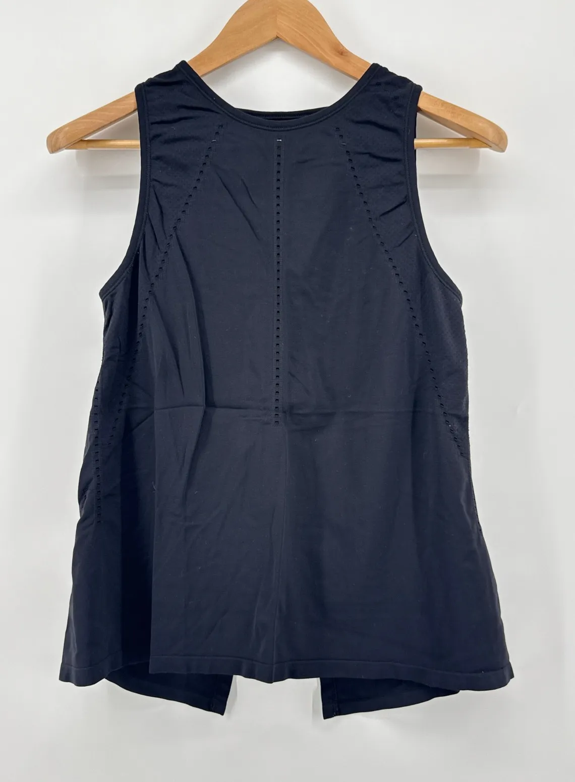 Keywords: Athleta tank top, black tank top, sleeveless top, athletic tank, workout top, activewear, split back tank, women's tank top, exercise top, gym tank, yoga top, size S, black athletic top, Athleta, running top