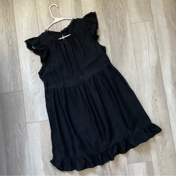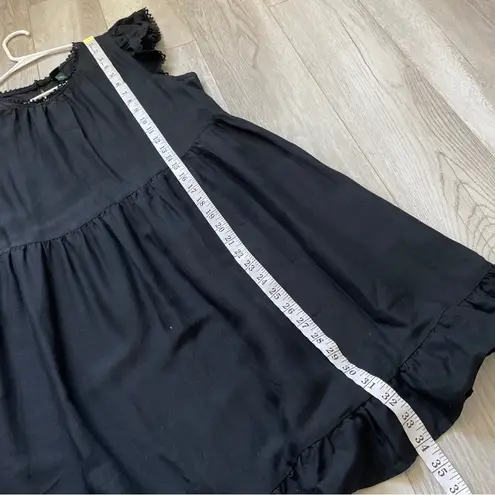 Wild Fable Target Woven Ruffle Hem Mini Dress in the color Black. Sleeveless, with ruffle edge. Roun... Show more