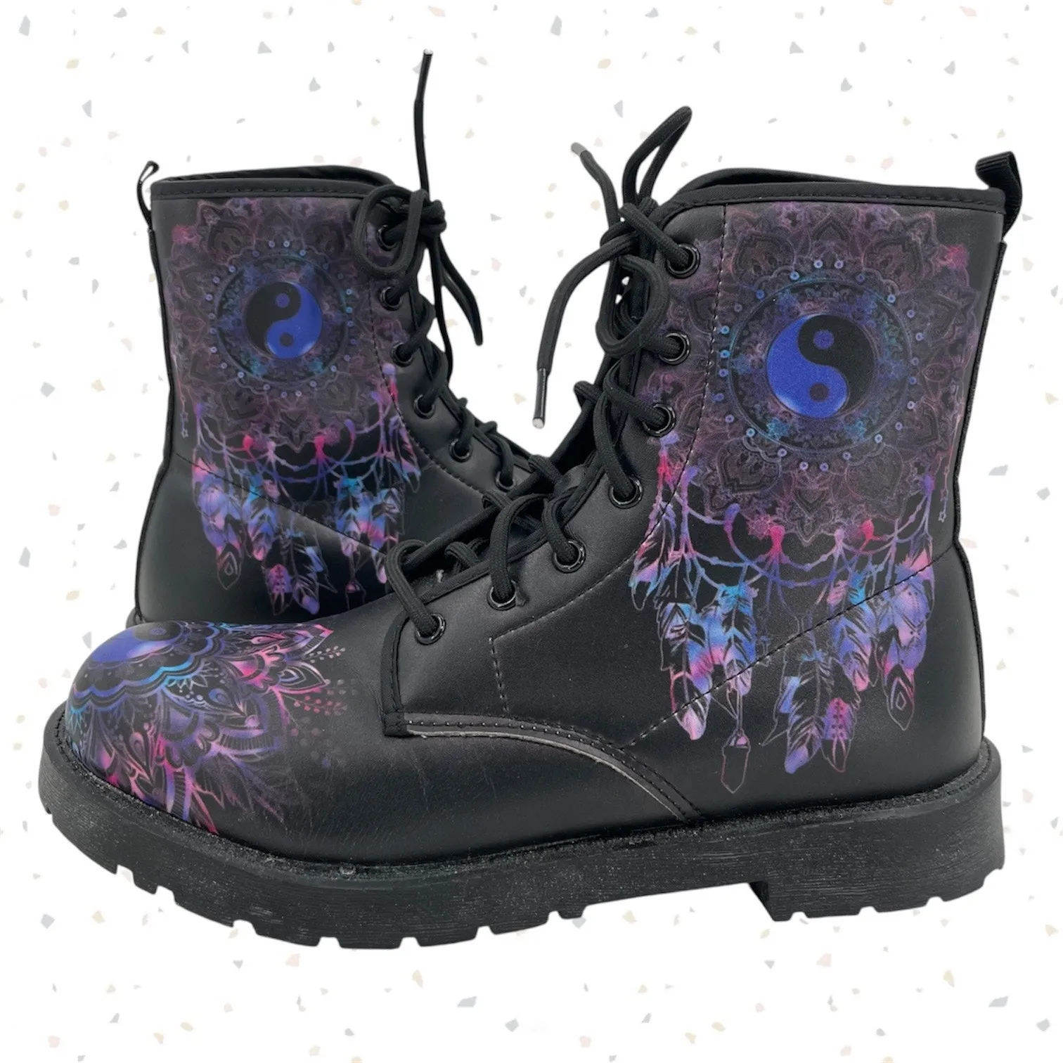 Mystical yin yang ☯️ dreamcatcher festival ready combat boots with a magical, spiritual vibe. Soft... Show more