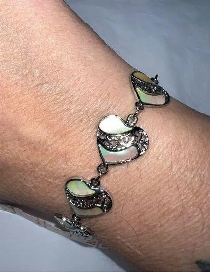 Vintage Silver Tone and Abalone Heart Link Bracelet - $17 (62% Off Retail) - From A Little