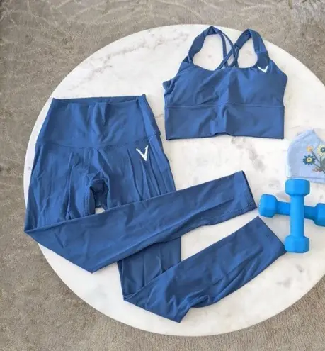 NWOT Color: Blue Size: Small Material: 87%Nylon 13%Spandex Sports Bra Measurements: Underarm to Underarm: 14-18 Waistband: 12-16 Underarm to Hem 6.5 Shoulder to Hem 12 Legging Measurements: Waist 10.5-16 Rise 10 Inseam 25 Check my listings for several more photos Model is 5'1 shown in same outfit, different color #Fitness #Workout #Gym
