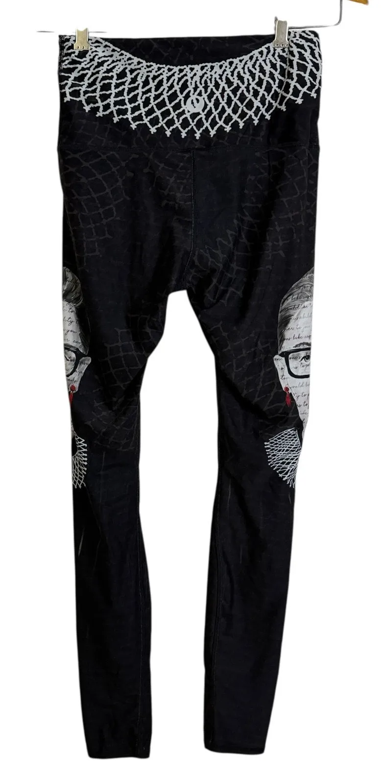 This listing is for a pair of Yoga Democracy RBC Ruth Bader Ginsbewrg Leggings. Black/White. Pull on. Logo at the back waist. Poly blend. Condition, Very good pre-owned condition Approx Measurements Tag Size, Small Waist, 12in Front Rise, 10in Inseam, 29in