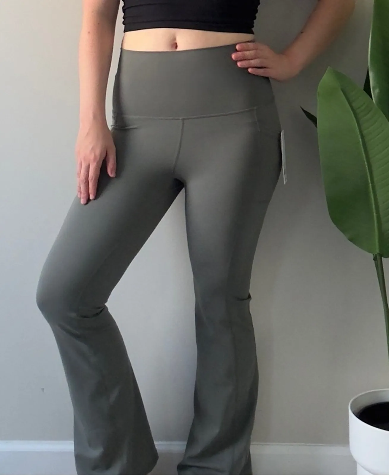 Chic olive flare pants by Yogalicious. Perfect for any occasion. Condition: Excellent pre-owned (n... Show more