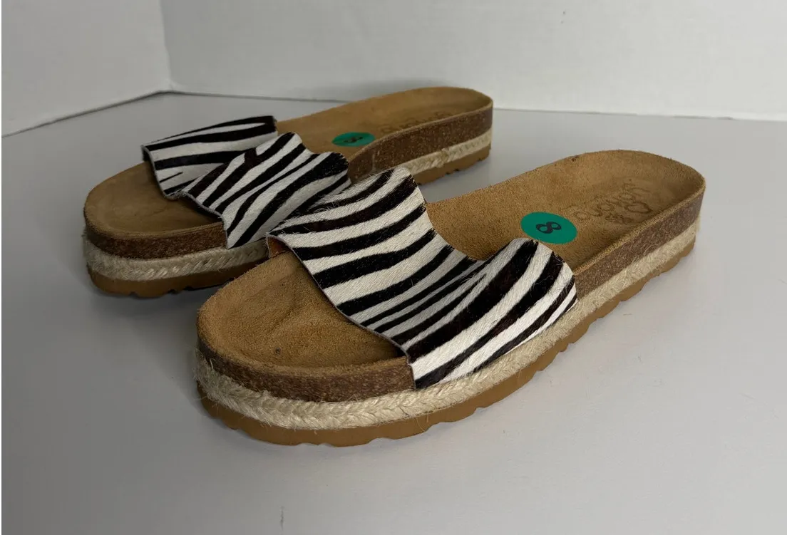 Yokono Spain Zebra Fur Leather Slide Sandals 8 Animal Print Beach Shoes Stylish Brown - $35 - From ThriftyKat