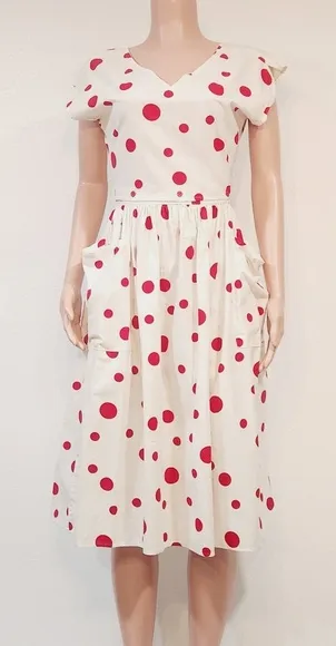 #XZB38 Size: 4 (Tag Says 7 Junior But fits more like a reg Size 4) Material: 100% Cotton Condition: Excellent Vintage Pre-owned Condition (Pre-Owned shows signs of normal wear, that is what Pre-owned means they are NOT NEW) Please look at ALL PICTURES Vintage You Babes By Fritzi Red Black Polka Dot mid-length Skirt, probably 80’s but could be late 70’s. Juniors Size 7, 24” waist, open hips. Unfortunately for me it’s too small in the waist for me but if it fits your waist and you’ve got bigger hips, it would look great! Get your hands on this excitingly witty vintage Fritzi You Babes II polka dot skirt & Shirt Wet that can be worn Buttoned up together like a dress or unbuttoned turning it to a Skirt and shirt Shirt. Crafted with premium cotton quality fabric, this classic piece comes in a unique red and white color combination that screams elegance and style. Pair it with any look for the perfect finishing touch. - You Babes II - Vintage - Red - White - Polka dot - Skirt - Shirt - By Fritzi