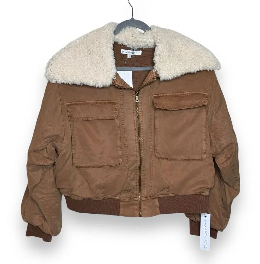 This is a Women's Young Fabulous & Broke jacket in size L, featuring a sherpa collar in brown. Made... Show more