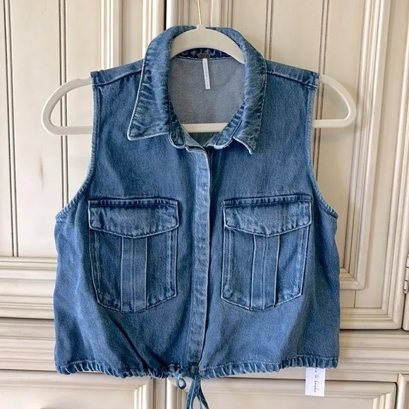 Women’s Young Fabulous & Broke Cropped Loose Fitting Medium Blue Denim Vest Top Sz S NWT - New With... Show more