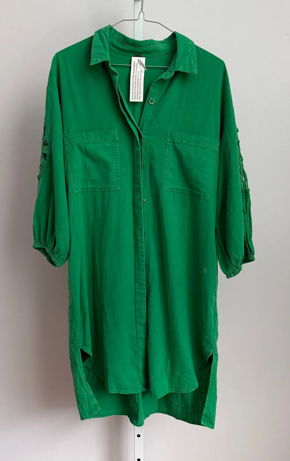 YFB Young Fabulous & Broke Green Embroidered Sleeve Button Down Dress XS Brand new with tag. Has d... Show more