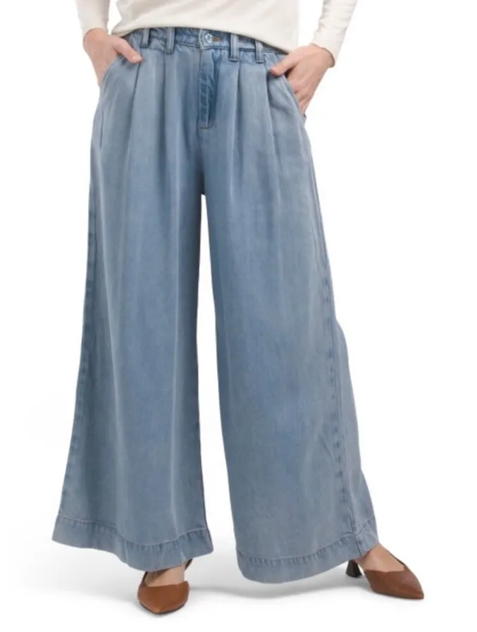 Stylish light blue wide-leg pants. Comfortable and trendy.
