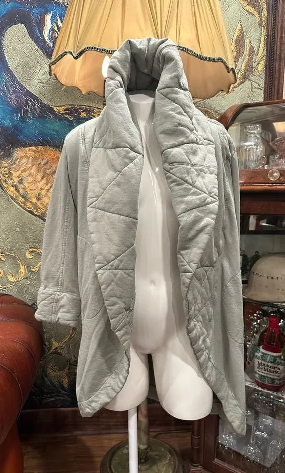 Embrace warmth and style with this chic sage green puffer open cardigan from Young Fabulous & Broke... Show more