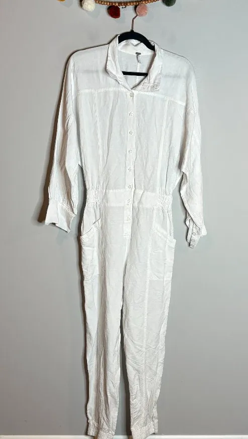 Young, Fabulous & Broke white linen blend long sleeve utility jumpsuit - $77 - From Lindsey