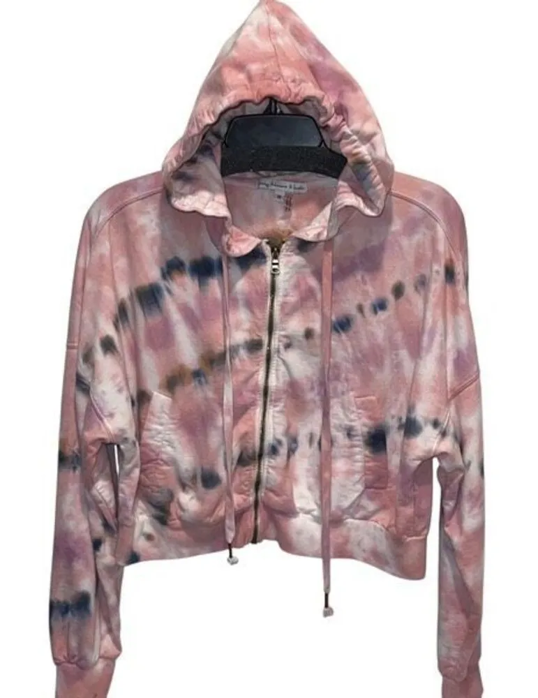 Description: Young Fabulous & Broke Womens Full Zip Hoodie Drawstring Cropped Medium Pink Tie Dye F... Show more