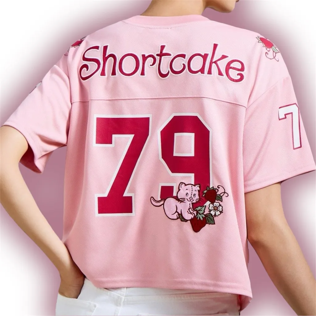 Strawberry Shortcake and Custard Cat Women's Cropped Pink Football Jersey Size XL - $125 New With Tags - From LuvConquers All