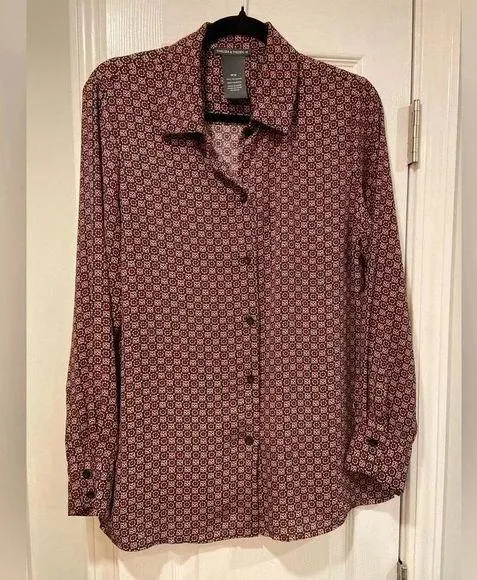 Chelsea & Theodore Red Gray Floral Long Sleeve Button Down Tunic Blouse Size M Size M - $21 - From Lindsey