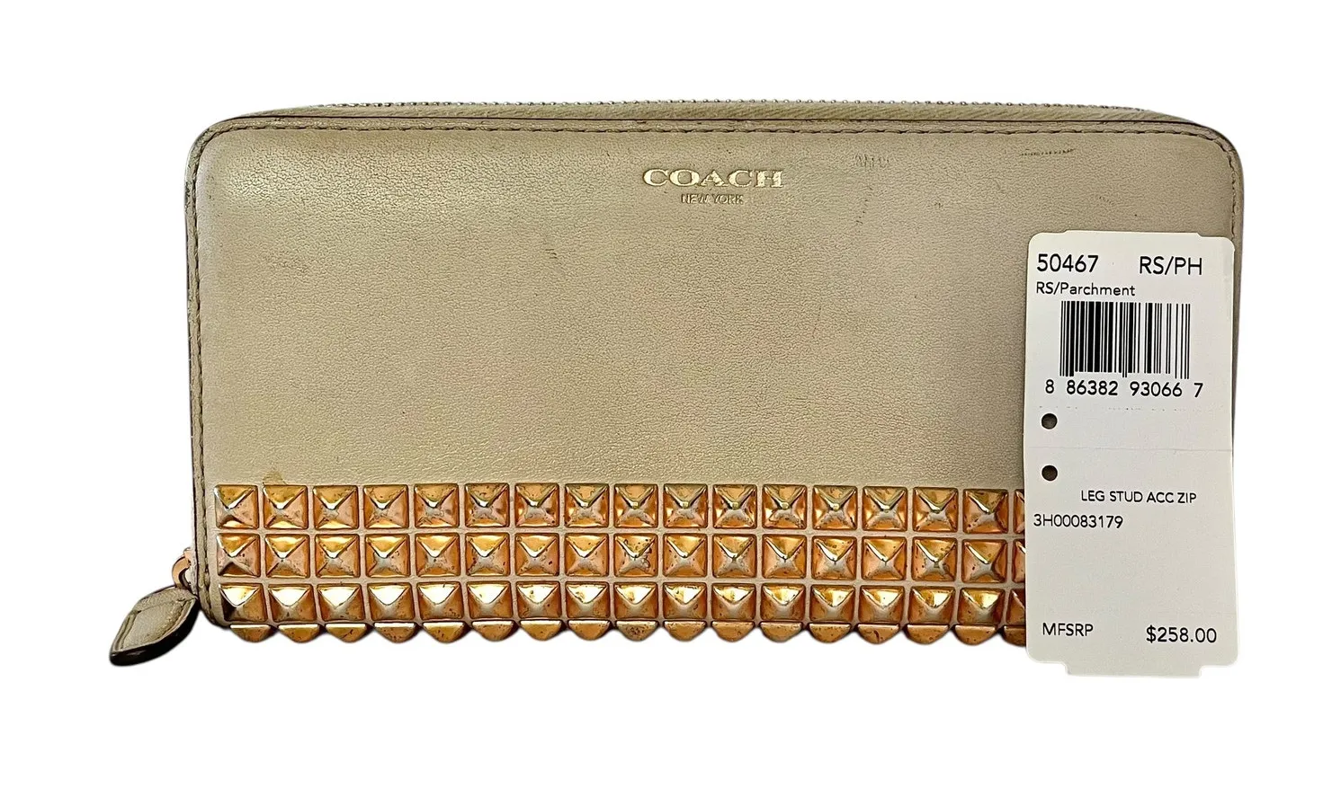 Beautiful leather wallet with studded details from Coach's Legacy line. Parchment (cream-white/light... Show more