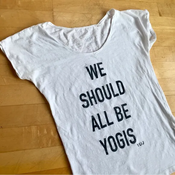 We really should “ALL BE YOGIS”! Let’s do it! 🧘♀️😂 The perfect tee for your next yoga session or a great gift to a yogi friend. Classic black and white so you can’t go wrong with styling. And the icing on the cake is it in HTF 100% organic cotton. Winner! 🏆 EUC Size: XS (fitted style) Measurements: see pics, if avail Pet/smoke-free home. Will, of course, steam and/or clean the item prior to packing it to remove any wrinkles for you (if appropriate and/or won’t disturb any attached tags, etc).