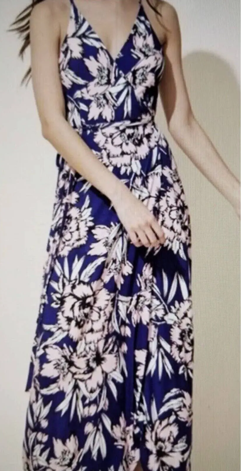 Yumi Kim Midsummer Night Maxi Jersey Knit Wrap Dress in Free Fall/Navy Pink XXS This maxi is done in a jersey knit which makes it very versatile The wrap style has adjustable straps 14.25" armpit to armpit 43" Back length Retail $188.00